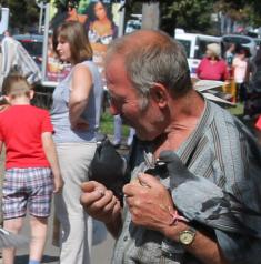 Цей позашлюбний татко голубів любить птахів. І не соромиться такого публічного вияву своїх почуттів. І вони його люблять. І не бояться.