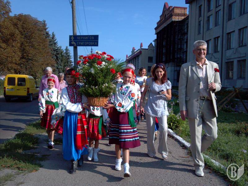 Учасники урочистостей поклали квіти до підніжжя пам'ятника Тарасу Шевченку. Корзину с квітами від міськвиконкому до парку несли діточки, а доносили до пам'ятника у самому парку заступник голови міськради Олег Баранков і секретар ради Олег Кірсанов.