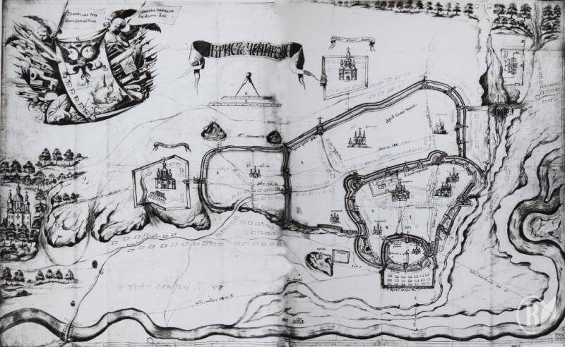 До наших днів зберігся унікальний документ — «Абрис Чернігова», рукописний план 1706 року. Він містить рисунки фасадів головних оборонних, культових та інших споруд, в яких достовірно передано архітектурні особливості будівель. На «Абрисі Чернігівському» зображено і Верхній замок — невелику колоподібну за планом фортецю, де розташовувався гарнізон урядових військ, він налічував сім башт.