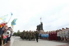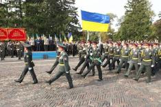 Після покладання відбулася урочиста церемонія виносу історичного Прапору Перемоги, піднятого на Красній площі 21 вересня 1943 року та урочисте проходження військових частин Чернігівського гарнізону.