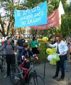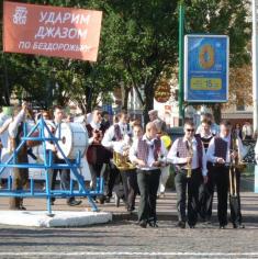 Над учасниками променаду під супровід духового оркестру Збройних сил майоріли транспаранти "Ударим джазом по бездорожью" і "Каждой бабе по джазу!".