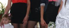 Для прикладу, хоча б той - з букетом на основному фото. А дві леді - в кадрі зі міні-спідничками. Перша - зліва внизу фото, друга в тому ж кадрі справа у білій весільній сукні.