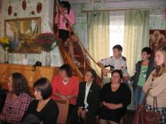 Після огляду музейної експозиції господарі пригостили гостей солодощами та гарячим узваром. Після того всі перемістилися в кімнату з каміном, де під гітару співали туристських пісень, читали вірші, спілкувалися.