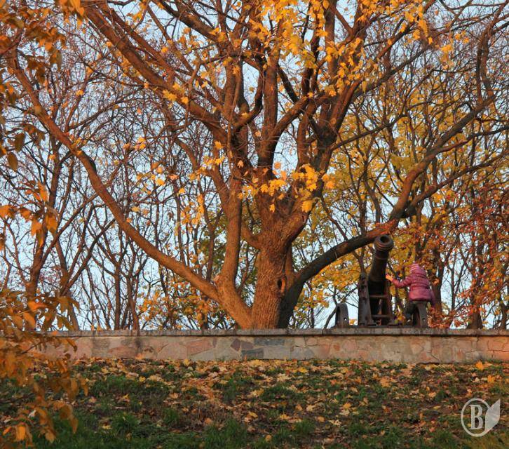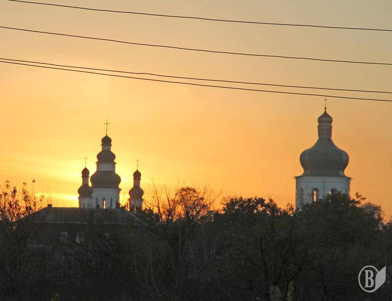 Видно як димліть труби міста. Як застигли величні башти соборів. Як бавляться діти на древньому Валу.