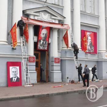 Спершу актори-комуністи захопили обласний театр імені Шевченка, а сьогодні радянська символіка прикрасила міськраду.