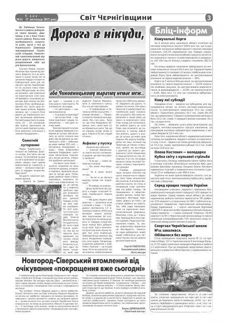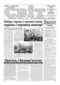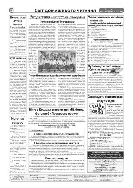 Цей і попередні номери газети «Світ» можна придбати в Чернігівському культурно-мистецькому центрі «Інтермеццо» ( вул.. Шевченка, 9)