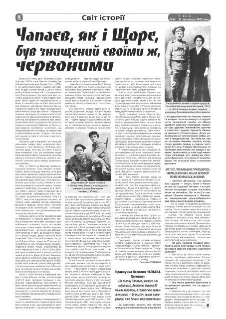 Газета «Світ»: Щорса і Чапаєва знищили свої ж, червоні