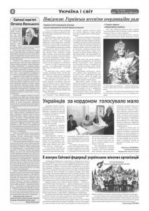 В газеті детальні підсумки парламентських виборів. Традиційною стала сторінка про життя багатомільйонної української діаспори. Також є інформація з життя області і України, теми про літературу і мистецтво.