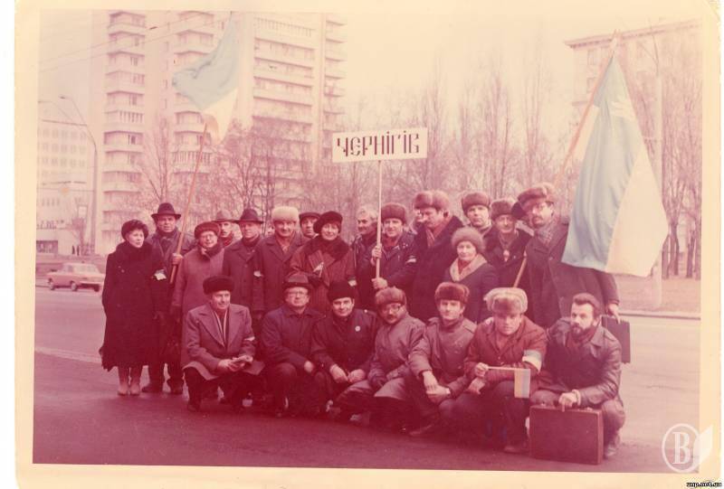 На світлині з архіву Чернігівської обласної організації Української народної партії, що оприлюднюється вперше, учасники заходу з Чернігівщини біля станції метро «Більшовик» (Шулявська) у м. Києві.