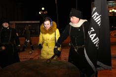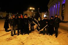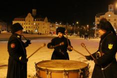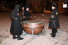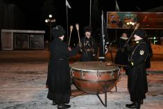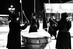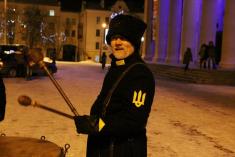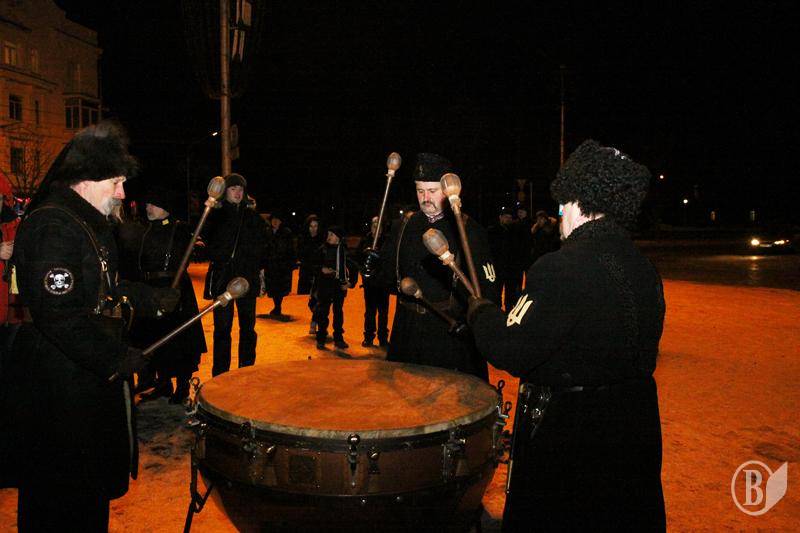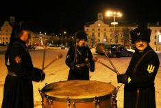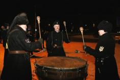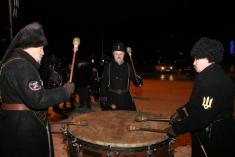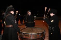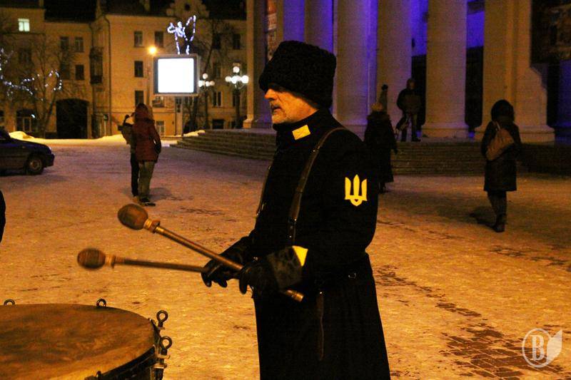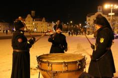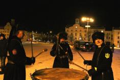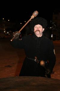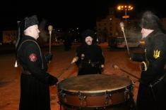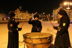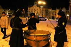 Козаки «Полку Чорних Запорожців» виставили сьогодні свою варту на центральній Красній площі Чернігова і вдарили у тулумбас.