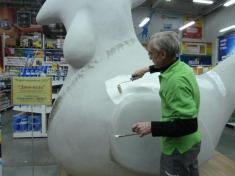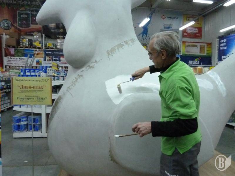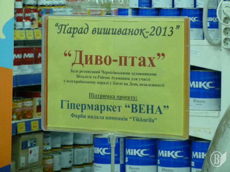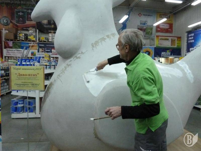 За словами заступника міського голови Анни Романової, яка колись була обличчям «венівської» організації «Громадська думка», «бізнес пішов назустріч» місту і надав допомогу, що «дозволило заощадити бюджетні кошти». До того ж, розфарбовувати диво-птаха на вулиці не зовсім затишно. А от у магазині «Вена» це робити набагато зручніше. Чи пропонував свої площі і фарбу під таку благородну справу гіпермаркет «Епіцентр» (який надзусиллями «Вени» і міської влади був «випханий» за межі Кільцевої дороги) чи інші комерційні структури, Анна Романова наразі не повідомила.