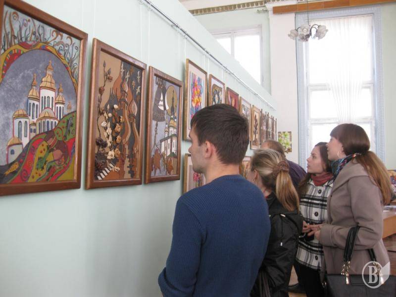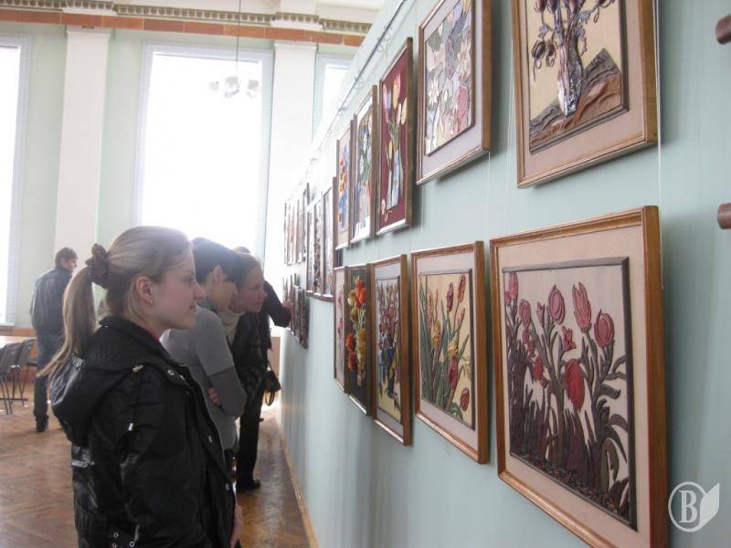 До уваги відвідувачів було представлено 33 авторські роботи української тематики, зроблені з природніх матеріалів: шкіри, ниток. Перші роботи Олександри Іванівни з’явилися після виходу на заслужений відпочинок і одразу отримали визнання, а сама майстриня - чимало шанувальників свого таланту.
