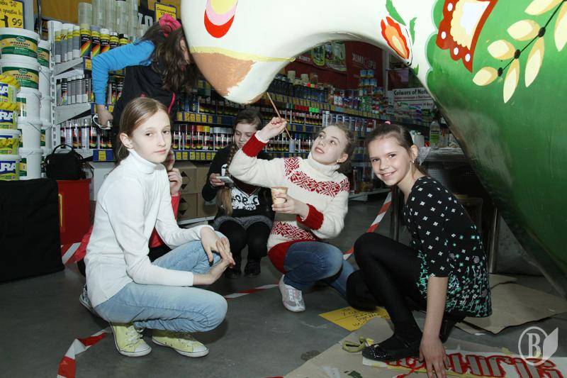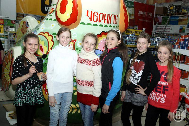 Учні художньої школи минулого четверга допомагали майстрині Таїсії Атаманюк розписувати чернігівського «Диво-птаха».