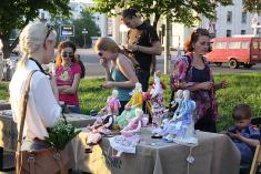 Можливо організатори це зробили спеціально, бо столи з роботами майстрів, художні роботи, зелений намет і сцена попереджали – тут ось щось почнеться.