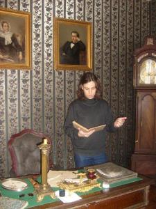 12-00: в історичній експозиції відбувся інтерактивний захід “Дворянський кабінет ХІХ століття”. Для поглибленого вивчення істричних подій, традицій та побуту ХІХ століття співробітниками Чернігівського історичного музею імені В.В. Тарновського розроблена низка подібних заходів для школярів та студентів.