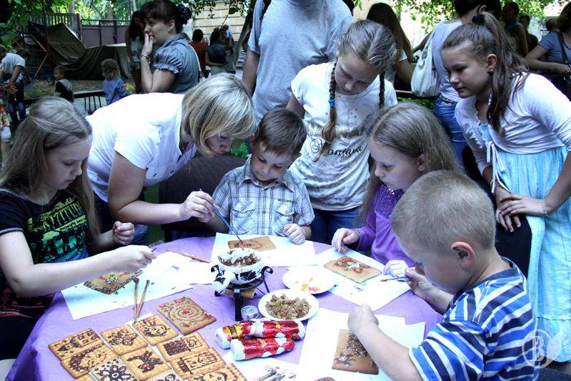 На дитячому майданчику на подвір’ї музею дiти малювали шоколадом та грали у рухливі ігри.