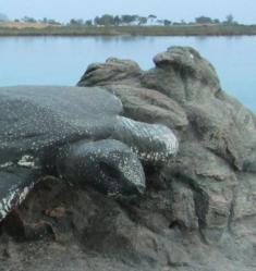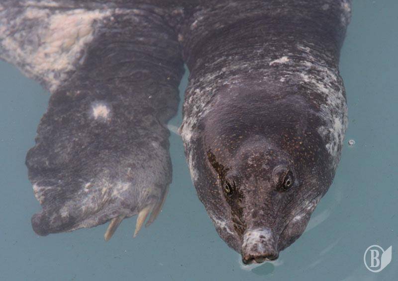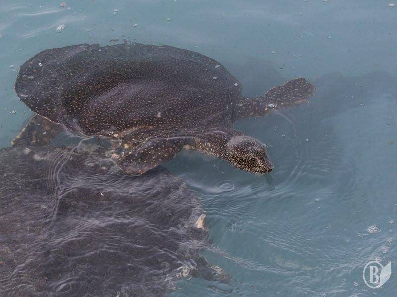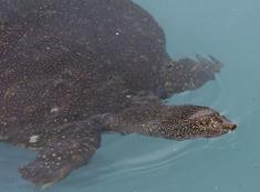 Дівчинка з бабусею ходила до моря по берегу озера і бачила, як далеко від місця годівлі, біля берега над водою з’являлася голова черепахи, обдивлялася навкруги і зникала знов.