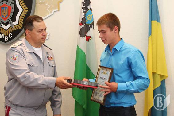 Переможці обласного конкурсу на кращий літературний твір «Якою я хочу бачити міліцію в Україні» отримали нагороди выд начальника УМВС в Чернігівській області Олександр Михайлик.