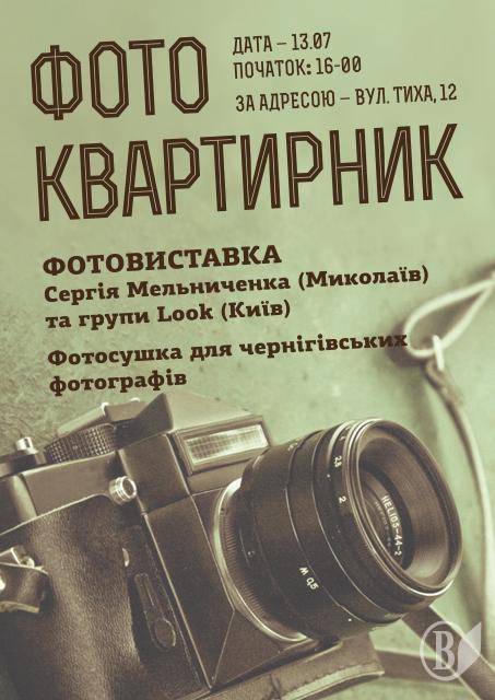 Фотосушка для всіх чернігівських фотографів — можливість заявити про себе світу, познайомитися з однодумцями, обмінятися фотографіями. Запрошуються всі, хто бажає. (У зв'язку із обмеженістю місця — не більше 5 фото від автора, розмір — до 20х30).