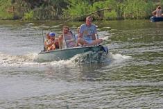 до того ж видно, що навіть судзуки ледьве тягне переповнений човен.