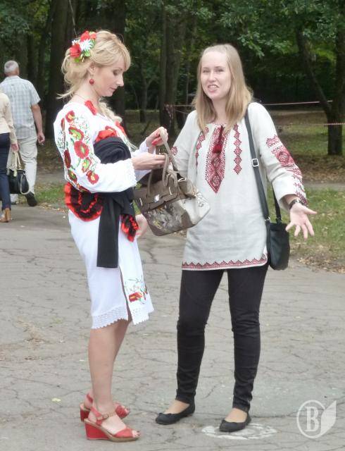 В этом году на День независимости красавицы и красавцы в вышиванках также собрались около последнего фонтана в Центральном парке культуры и отдыха.