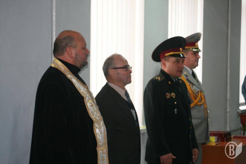 Также с поздравительным словом к военным музыкам обратился священник Храма всех святых протоиерей Владимир, который, кстати, срочную службу в свое время проходил в военном оркестре железнодорожного полка в Чернигове. Протоиерей Владимир помолился за музыкантов, благословил на безукоризненное выполнение ратной службы, поддержания высокого боевого духа военнослужащих, и пожелал им крепкого здоровья, семейного благополучия и божьей ласки. Священник подарил каждому из музыкантов иконы с молитвами, военному коллективу – икону святого Иоанна, а Валентину Мязю – Николая Чудотворца.