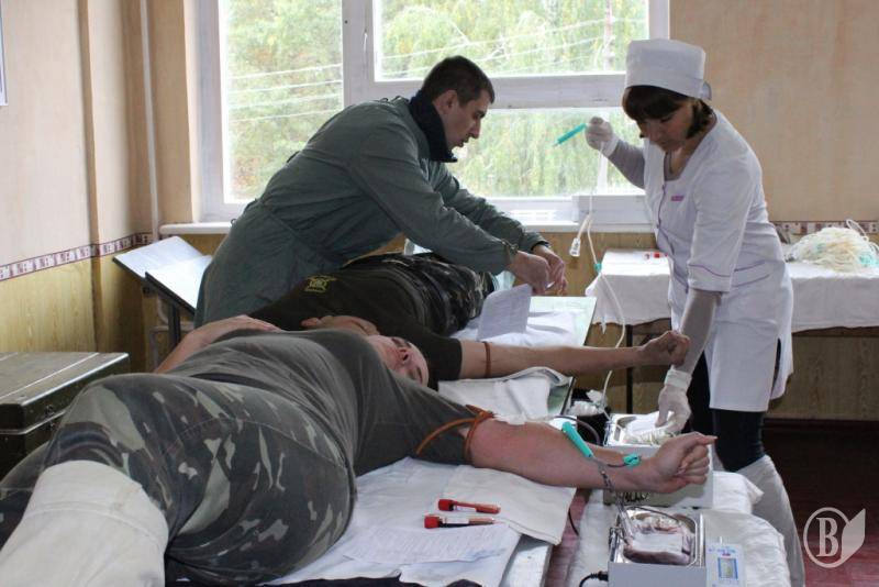 Кожен донор в погонах пройшов реєстрацію та ретельний огляд лікаря, з вимірюванням артеріального тиску та іншими необхідними медичними маніпуляціями.