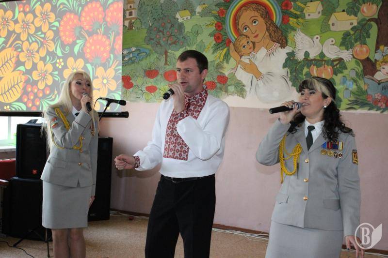 А в місцевій школі свято продовжилося концертом артистів Військово-музичного центру Сухопутних військ Збройних Сил України. Концертні номери артистів і солістів чергувалися з виступами керівництва району, ветеранів та демонстрацією відеороликів про сучасне українське військо.