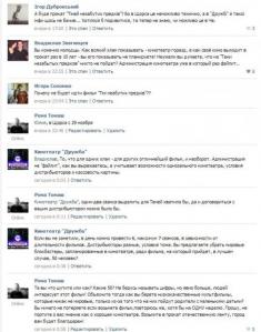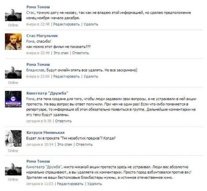 Реакцією на це стало видалення адміністраторами офіційної спільноти «Дружби» у Вконтакті будь-яких коментарів, у яких йдеться про «Тіні незабутих предків», називаючи це «засорением темы».