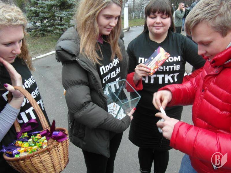 Студенты Черниговского техникума транспорта и компьютерных технологий могли обменять сигареты на конфеты в прошлый четверг, в Международный день отказа от курения (No Smoking Day).