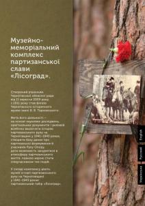 Буклет “Музейно-меморіальний комплекс партизанської слави “Лісоград” – упорядники: Сергій Лаєвський, директор музею та Людмила Линюк, заступник директора музею з наукової роботи. Комплекс, про який йдеться у буклеті є даниною пам’яті населеним пунктам, які “загинули і щезли геть з лиця землі... не від води, а від вогню. В огні... згоріли за допомогу партизанам”, але відродилися з попелу, та чернігівцям – учасникам партизанського руху. Виданий в рамках програми “Туристичний дивосвіт Чернігівщини”.