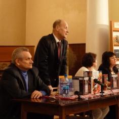 Поэтому его произведения презентовал публике Михаил Слабошпицкий. В частности, он рассказал об антиутопических работах, об описанных в них перспективах Украины как деспотически-феодального государства и воплощении некоторых перспектив в жизнь.
