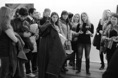 Директор із комунікацій фонду «АНТИСНІД» Павло Пімінов перед відвідуванням виставки і знайомством із експонатами делікатно порадив представникам регіональних ЗМІ, слухачам Університету журналістської майстерності, сприймати сучасне мистецтво спокійно і вдумливо. Всупереч його доброзичливому застереженню я, чесно кажучи, не була готова до такого своєрідного бачення проблеми і її незвичного( надто вже оригінального) втілення в картинах, фото, інсталяціях, відео…Відтак дивилася на всі шедеври широко відкритими (чи, як сказав би мій син, квадратними) очима. І якби не коментарі того ж таки Павла, не збагнула б сповна задумів авторів й алегоричності та метафоричності робіт. Надто вже вони, на мою провінційну точку зору, образні та нестандартні.