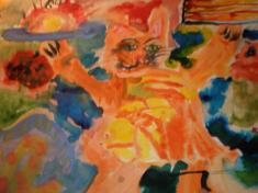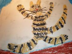 Огород, цветник, домашние заботы не давали ей взгрустнуть. Утехой для души сначала была внучка Елена, теперь – правнучка Маша. Обе они замечательно разрисовали и стены, и двери жилища. К тому же, украсив дом еще и собственными картинами и рисунками. К юбилею прабабушки Маша нарисовала несколько ярких полотен ( а пока я общалась с Надеждой Карповной, успела и мне подготовить гостинец – «Волшебного кота»).