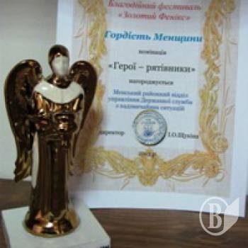 Особенно поразил зрителей новый проект "Гордость Менщины". Лауреатами этой премии стали обычные люди, которые являются образцом мужества, самоотверженности и жизнелюбия, и чья жизнь может стать примером для других. Одним из номинантив этого проекта определено коллектив Менского райотдела Управления Госслужбы Украины чрезвычайных ситуаций.
