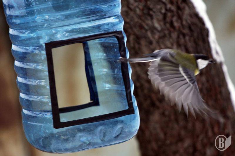 У пластиковій пляшки бажано обклеїти обрізані краї скотчем чи ізоляційною стрічкою, щоб птахи собі не обрізали лапки. Щоб у них не додалося крім голоду, ще й поранення. Бо швидкої допомоги їм чекати нізвідки.