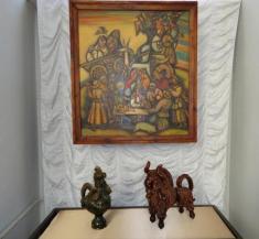 Світ образів Марії Примаченко — казковий, фантастичний. В основі його лежать фольклорні легенди, народні казки та оповідання, враження від них органічно переплетені з дозвіллям. У її творах фантастичне — життєве, а реальне — фантастичне. Усе так, як у казці: звірі, дерева, квіти діють, розмовляють, борються за добро й стверджують його, знищуючи зло. На виставці експонуються два твори майстрині: «Осінь іде» та «Чуліндра радіє, що уродила хороша морква».