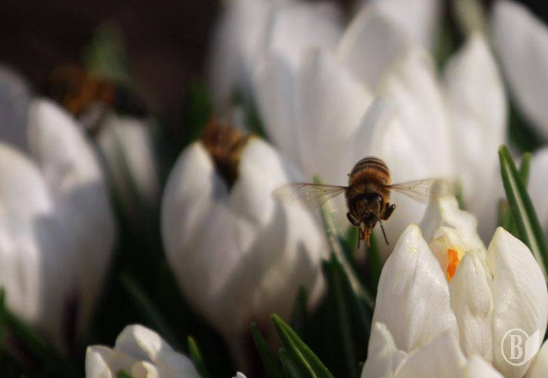Одні зависали в повітрі, даруйте, як бомбардувальники, з мішечками на лапках. Інші в цей час штовхалися всередині квіток, збираючи пилок.