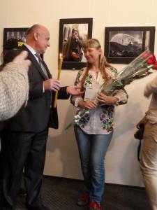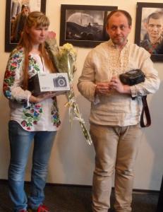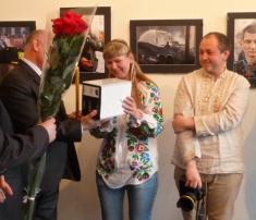 Перший заступник Чернігівського міського голови Микола Миргородський вручив Маріанні Харді фотоапарат від народного депутата України Валерія Дубіля.
