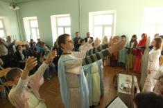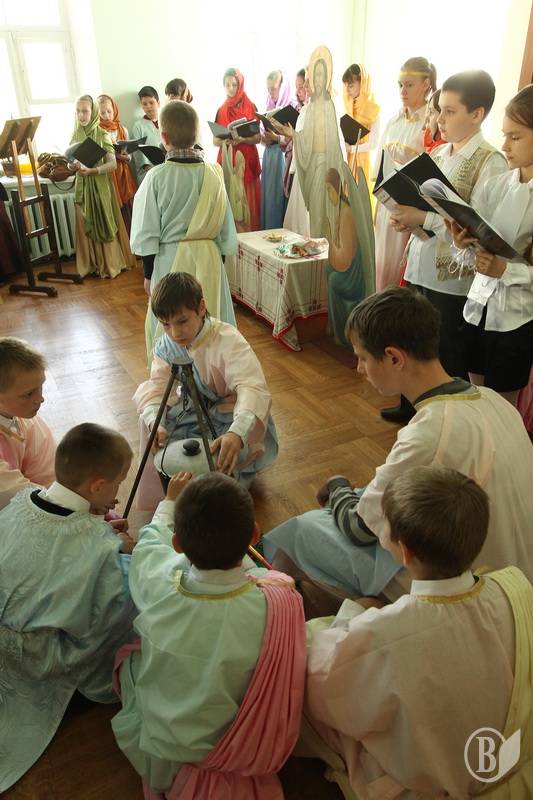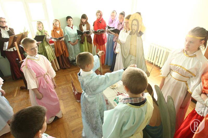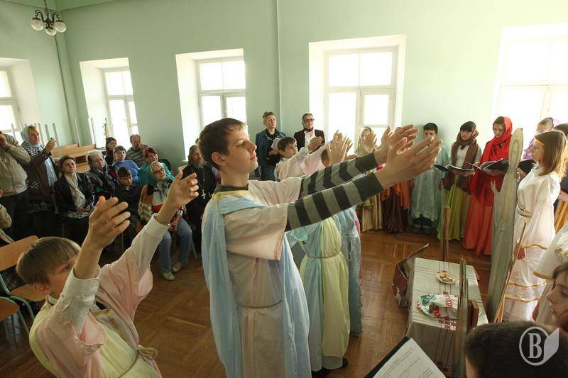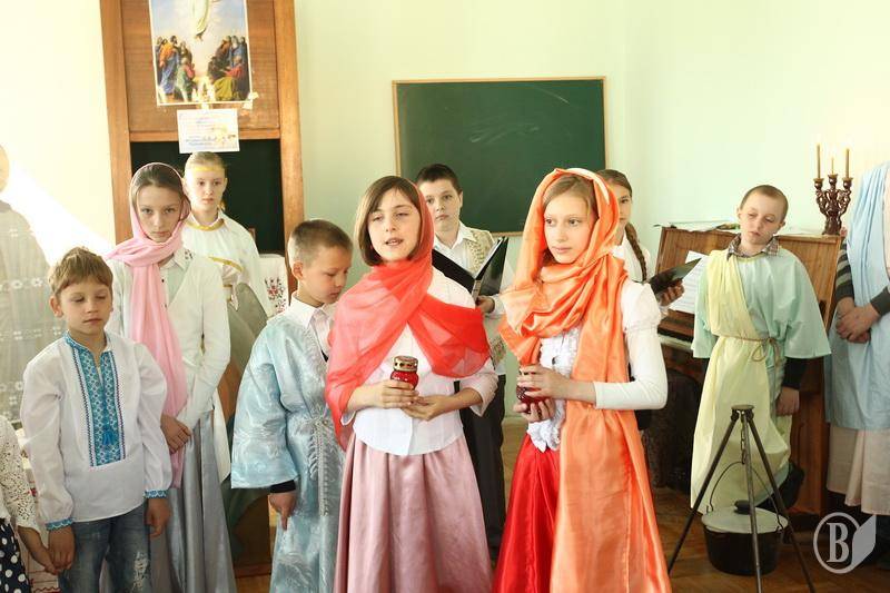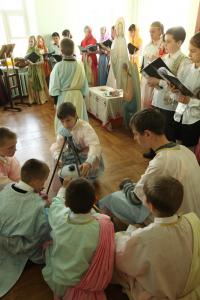 Вчера воспитанницы воскресной школы Свято-Троицкого кафедрального собора в Чернигове в театрализованной форме показали вознесение Иисуса Христа Спасителя своим родителям и наставникам, ведь сегодня состоится большой конкурс среди слушателей воскресных школ города в Спасо-Преображенском соборе в 13:00.