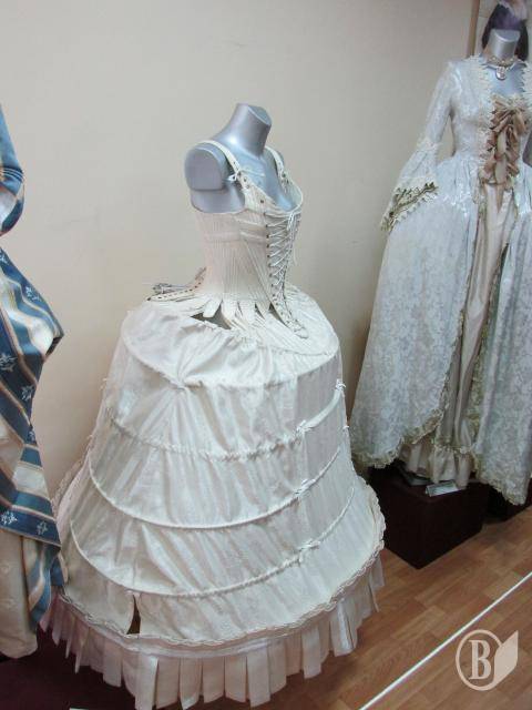 А, по-третє, сам процес одягання такої сукні міг тривати близько години та лише з допомогою помічниць: окрім, власне, сукні і корсету, одягалися ще й додаткові спідниці, а ззаду – ще й така собі «гармошка».