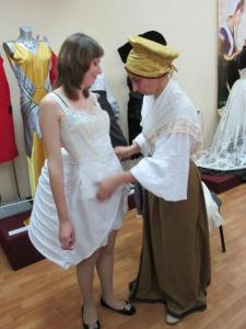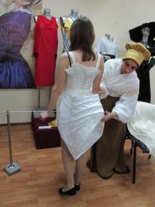 Цей процес, щоправда, у дещо пришвидшеному варіанті продемонстрували на відкритті виставки «Європейський костюм XV–XX століть», у Чернігівському військово-історичному музеї. Загалом, в експозиції представлено понад 30 як жіночих так і чоловічих костюмів 15-20 століть.