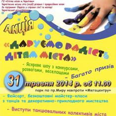 Акція «Даруємо радість дітям міста», присвячена міжнародному Дню захисту дітей, відбудеться 31 травня у Чернігові.