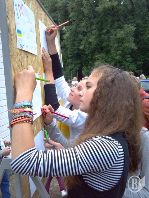 Як повідомляв "ВВ", свято для дітей розпочалося на центральній Красній площі міста запуском у повітря голубів миру зі встановленням рекорду. Перед глядачами виступив київський вуличний театр.