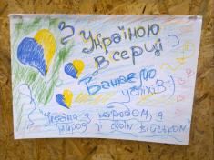 Щоправда, війна на Сході триває і незаплямований дитячий розум надавав перевагу зовсім іншому політику - Путіну. Відверті послання останньому можна було побачити на малюнках, які діти малювали для наших військових - оборонців Сходу держави.