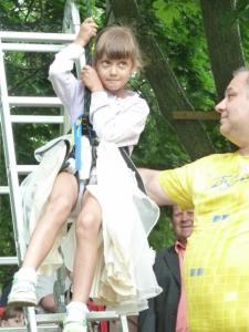 Свято для малят було і в літньому театрі, і на відкритій сцені Центрального парку культури і відпочинку. Усі охочі могли перелетіти на канаті ставок - профі-екстремали вправноі безпечно натягнули над ним трос для спуску.