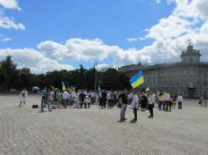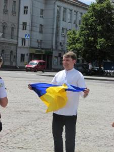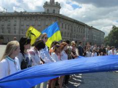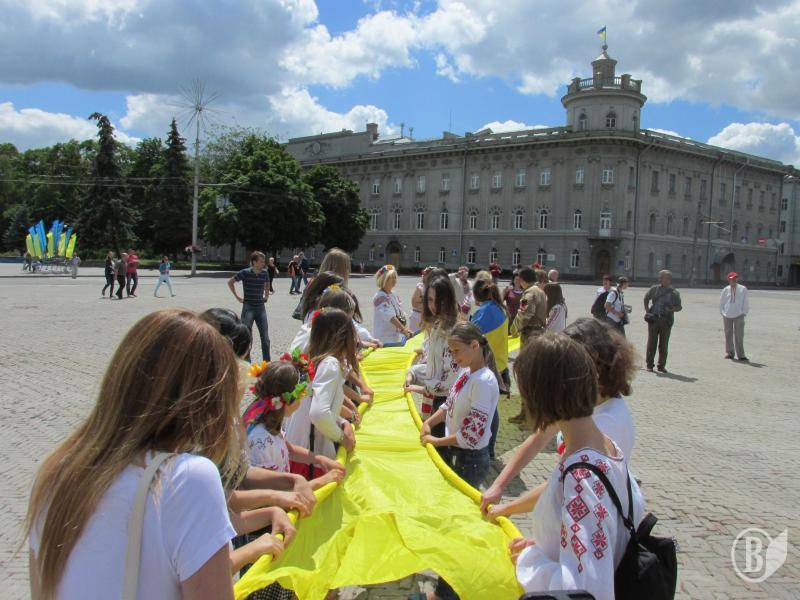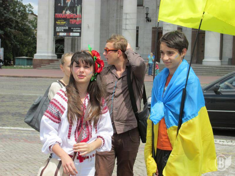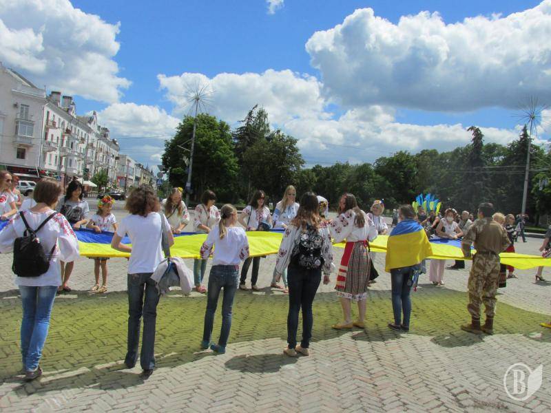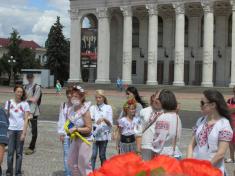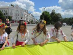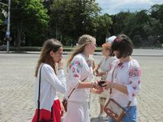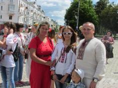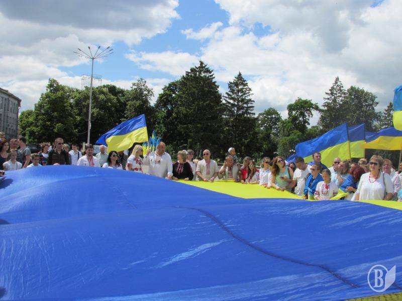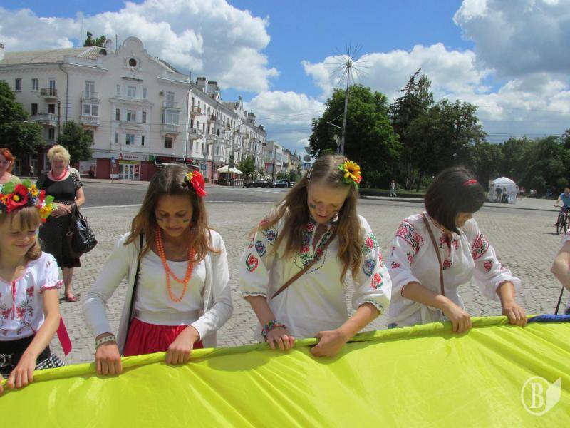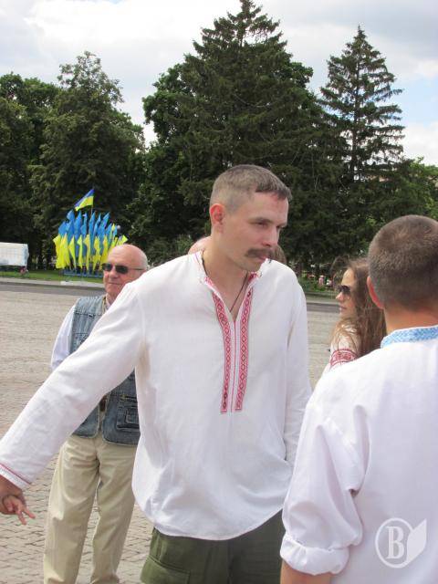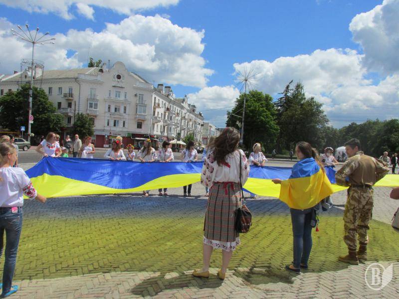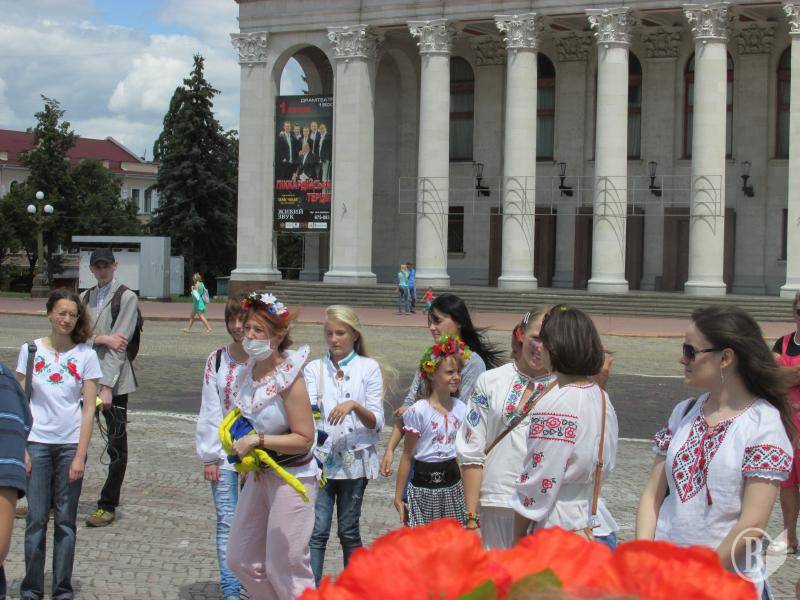Близько п'ятдесяти сіверських патріотів – з національною символікою та у вишиванках провели сьогодні – з нагоди Дня Конституції України у Чернігові на Красній площі Парад вишиванок та Конституційну фотосесію.