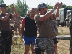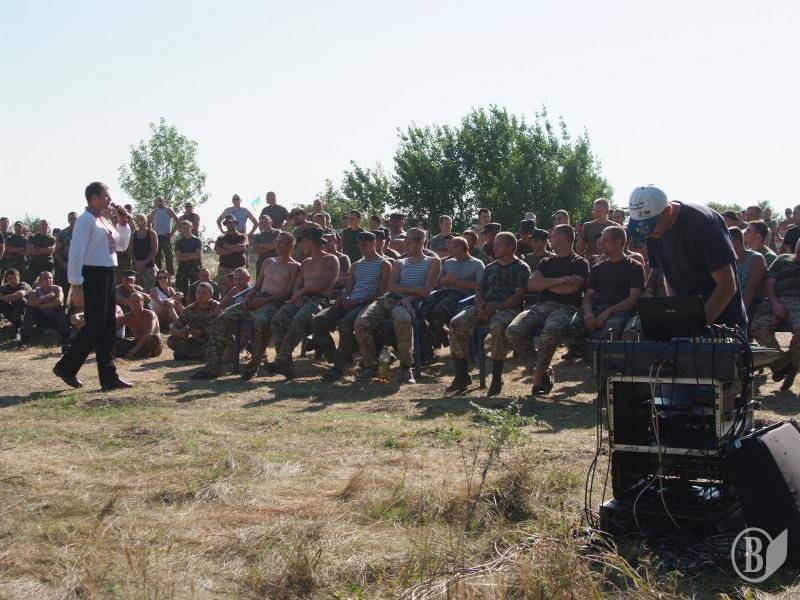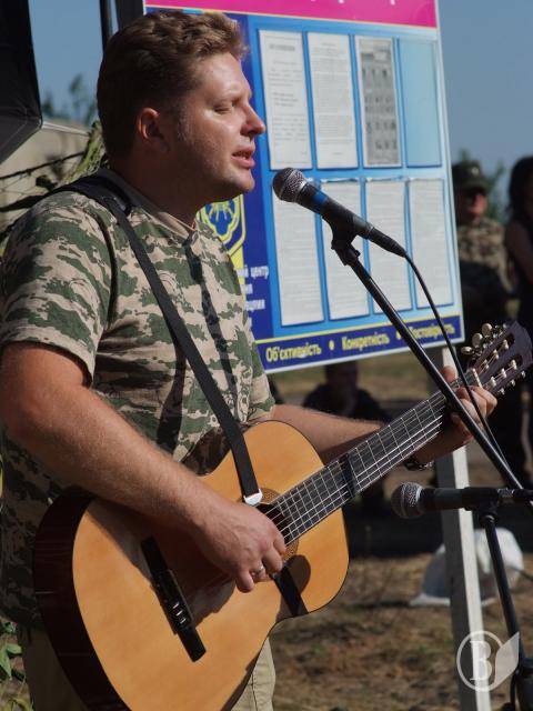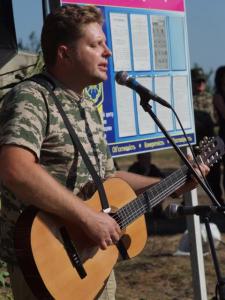 Разом з військовими музиками для бійців виконав пісні під гітару і відомий автогонщик та телеведучий Олексій Мочанов.