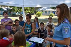 Найстарші вихованці табору переглянули профілактичний відеофільм, який наглядно демонструє, до яких плачевних наслідків призводить вживання алкоголю і наркотиків, адже всі мрії про світле майбутнє можуть бути перекреслені єдиною пігулкою чи ін’єкцією. Міліціонери пояснили підліткам, що правильний життєвий вибір – гарантія гідного забезпеченого майбутнього, яке не варто міняти на примарний кайф.