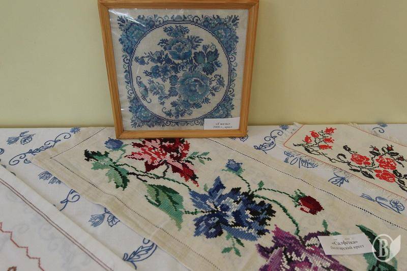 У неї багато робіт, виконаних з використанням таких технік: хрест, болгарський хрест, гладь, мережка, рішельє та інших різноманітних швах.